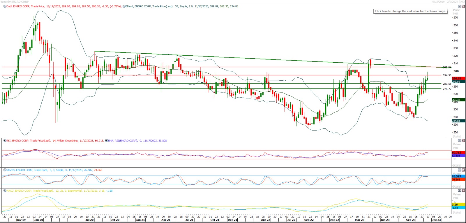 Buy as long as trading above 300 with strict stop loss of 294 and profit target at 307 with extension towards 315.TECH NOTE: ENGRO is moving inside a bullish price channel on hourly chart and breakout of a resistant trend line have taken place.