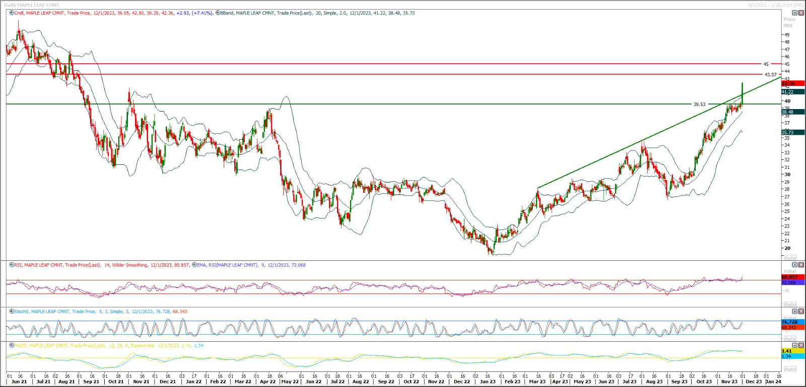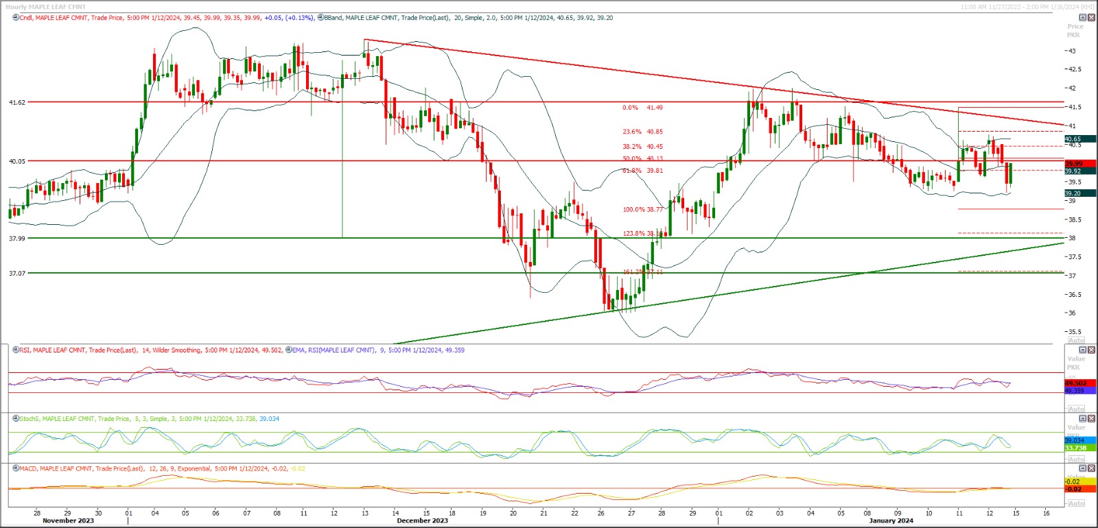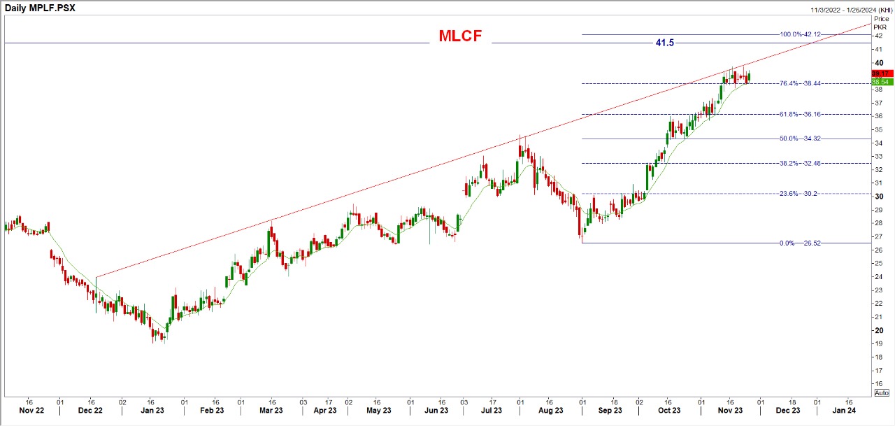 Short sell MLCF below 40 with strict stop loss of 41.60 ad profit targets at 38 with extension towards 37