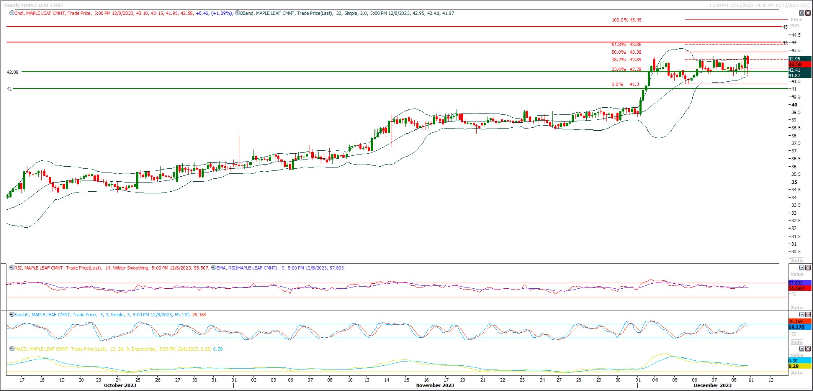 TECh NOTE: MLCF is moving downward after facing rejection from a descending trend line along with correction levels of its bearish rally on hourly chart and it would try to expand this correction in downward direction.